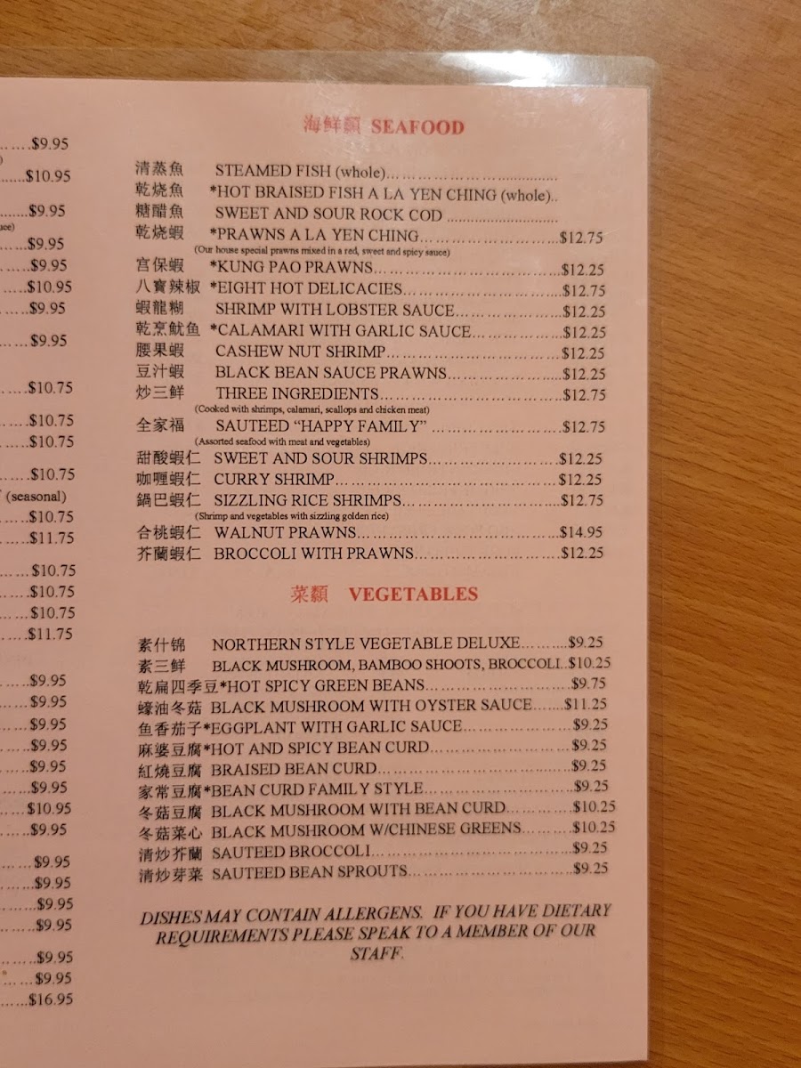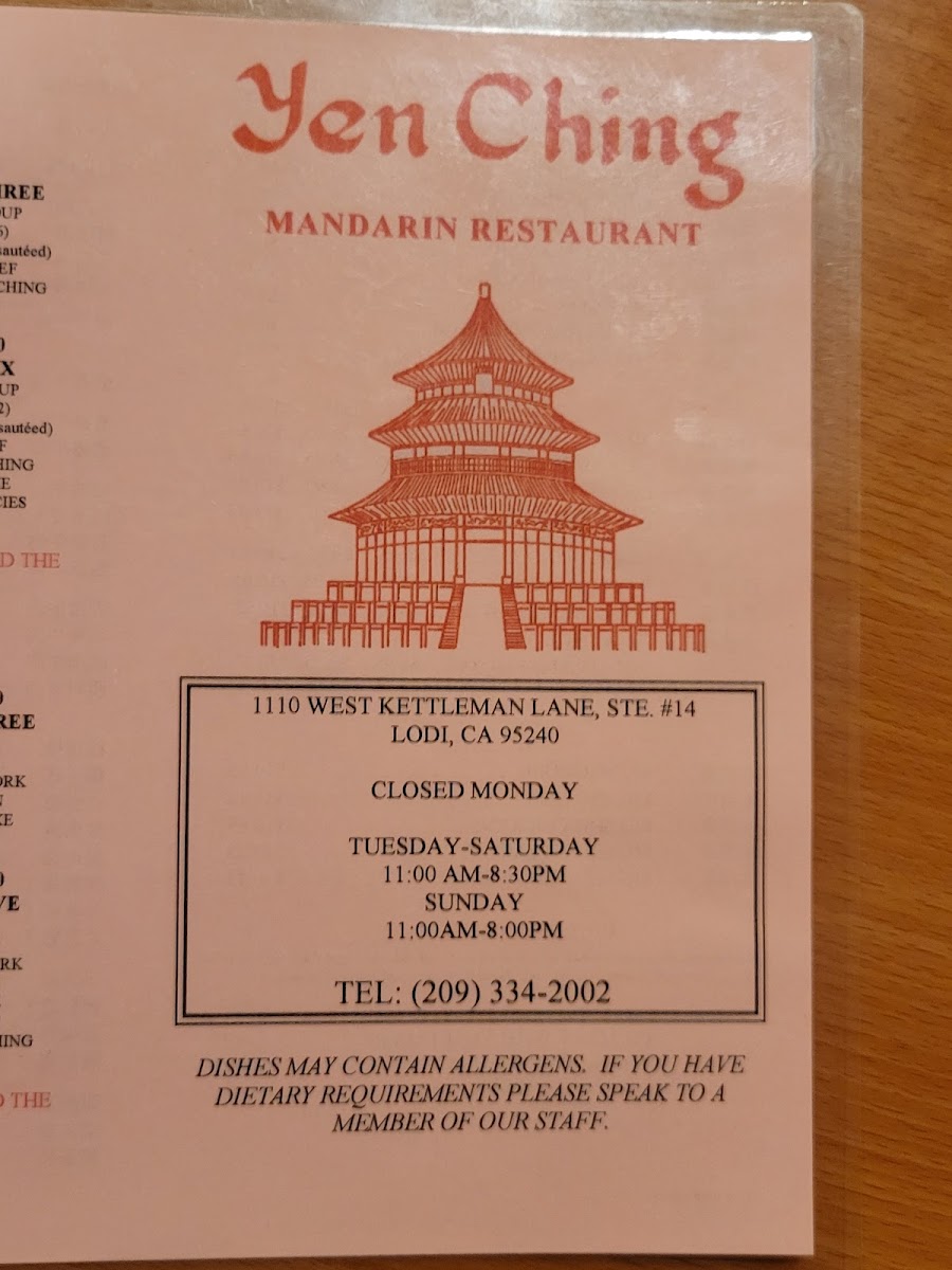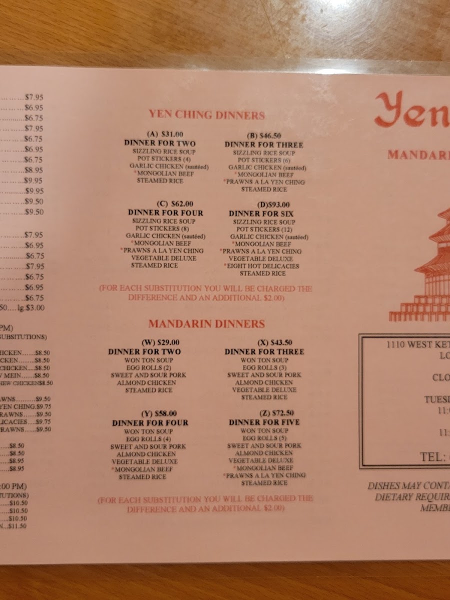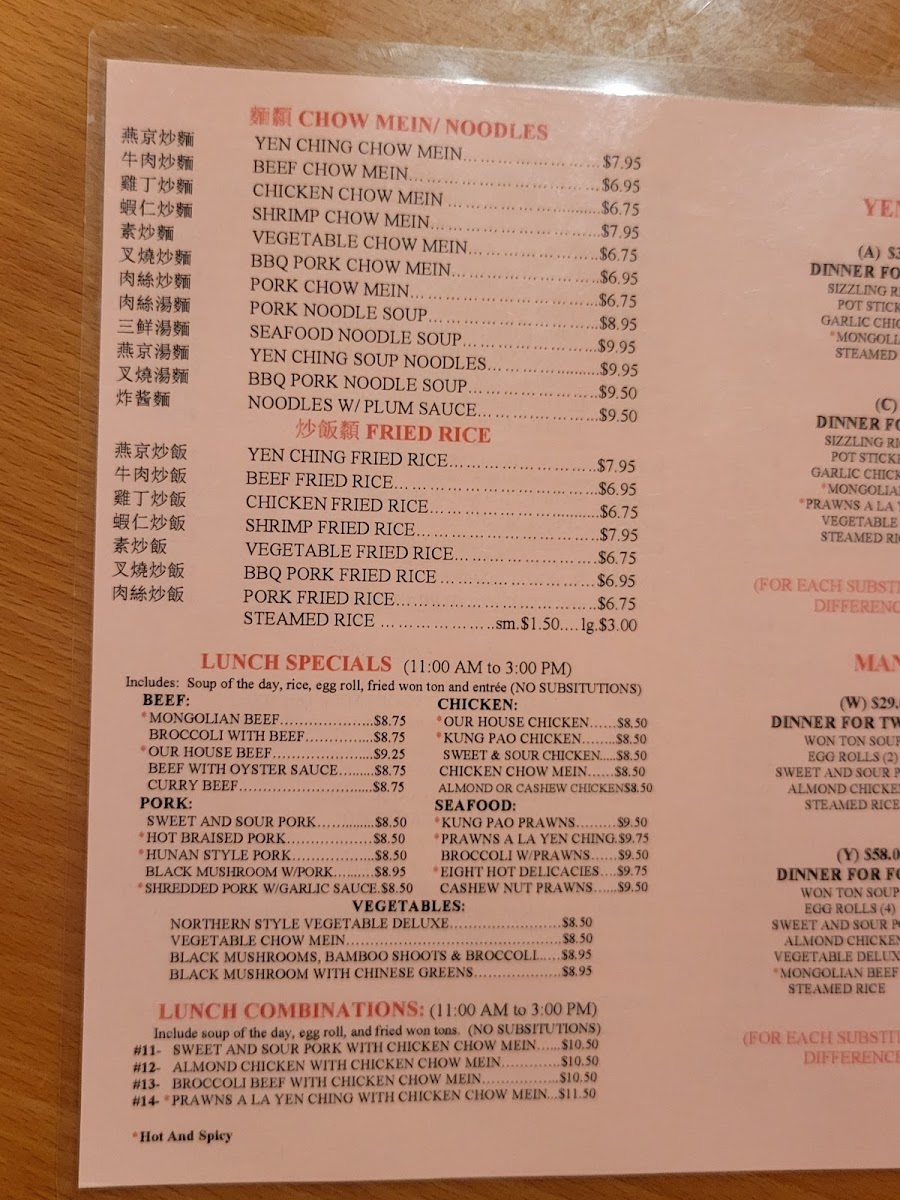 Yen Ching Restaurant Menu