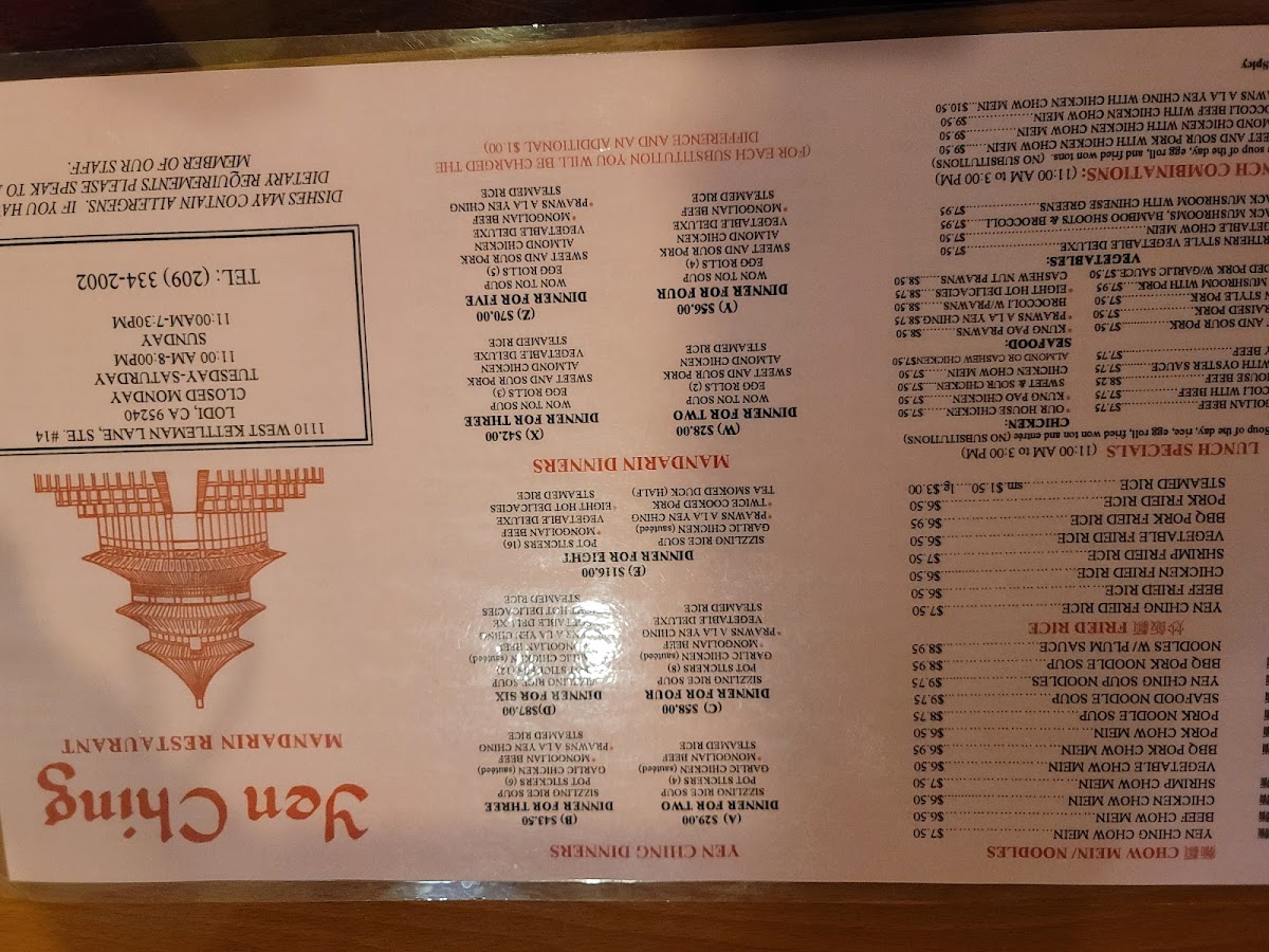 The menu at Yen Ching Restaurant offers a straightforward selection of classic Chinese dishes that are both comforting and familiar. Whether you’re stopping by for a casual lunch or a relaxed dinner, the menu provides a range of options from hearty noodle dishes to flavorful entrees and lighter bites.